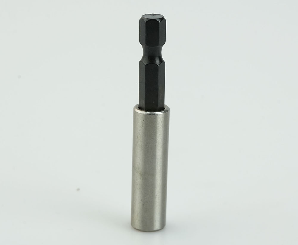 - Adaptateur magnétique avec entraînement 1/4" et douille hexagonale pour outils tels que tournevis pneumatiques et électriques ou perceuses.
